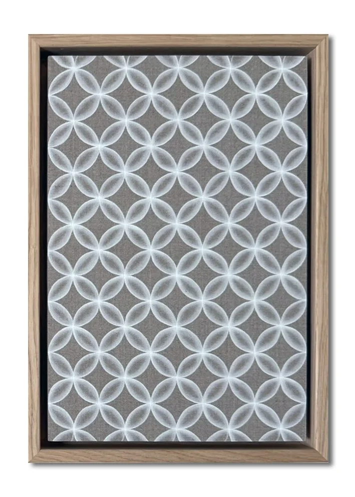 Das Shippo-Muster besteht aus überlappenden Kreisen und symbolisiert Harmonie, Unendlichkeit und Verbundenheit. Es stammt aus traditionellen Textilien und buddhistischer Symbolik. In diesem Kunstwerk steht es für Ausgewogenheit und die sich stetig entwickelnde Schönheit von Beziehungen.
